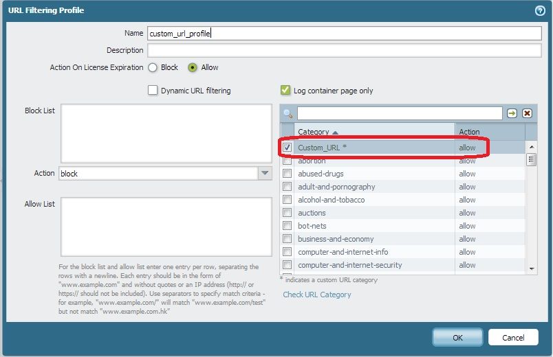 对于PAN-OS 6.06.1"自定义URL分类 "被重新命名为 "URL分类",并移至 "对象">"自定义对象 "下。
