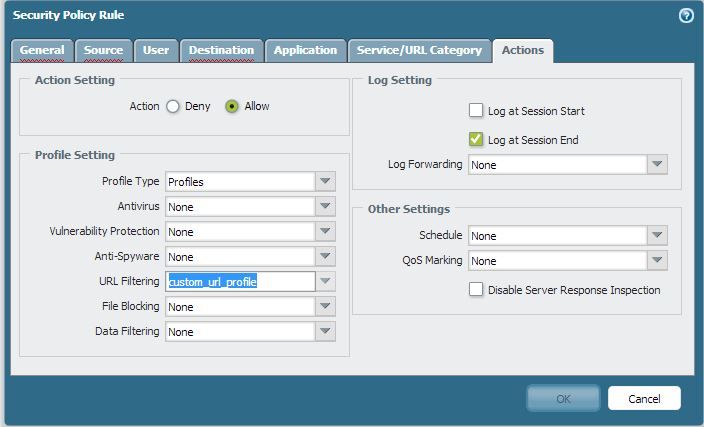 要在一个安全策略中应用URL过滤配置文件。