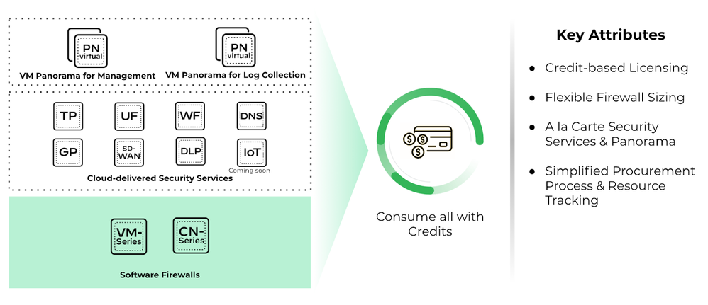 In February, Palo Alto Networks introduced Software NGFW Credits as a new, more flexible way for our customers to procure VM-Series and CN-Series NGFWs. Now, you can purchase Software NGFW Credits and allocate them as needed to software firewalls, cloud-delivered security services and virtual Panorama - all managed from the Customer Support Portal.