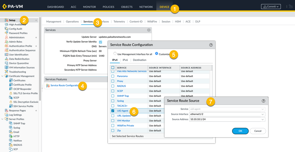 Device > Setup > Services > Service Route Configuration