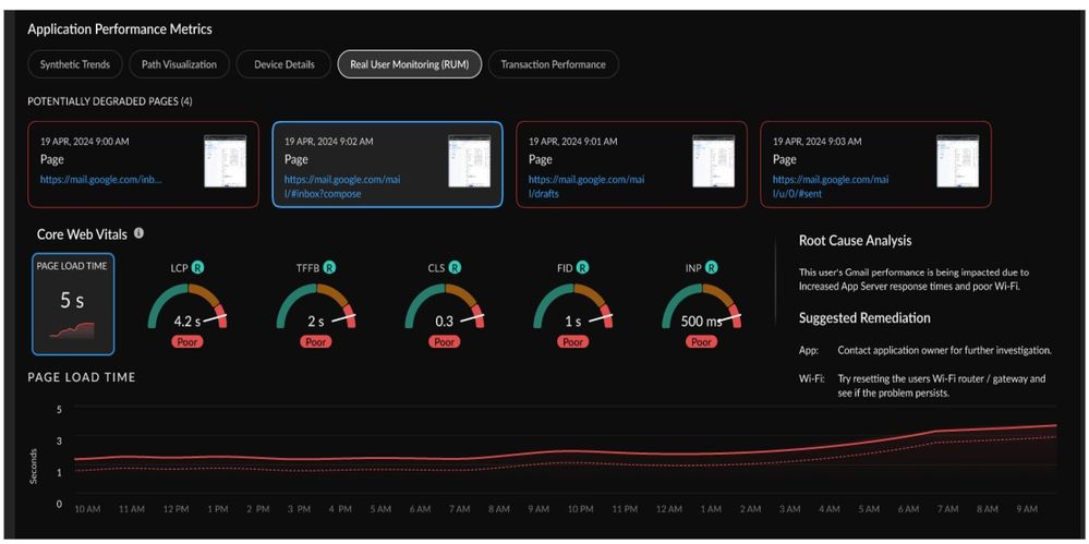 RUM can pinpoint these types of specific issues, helping administrators with visibility. With browser-based RUM, any performance degradation, such as slow page loads or delayed responses to user actions, is instantly identified, ensuring admins can quickly resolve issues and optimize user experience in real-time.