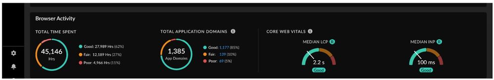 Provides visibility into browser experience at an individual domain level and per application page level including time spent.