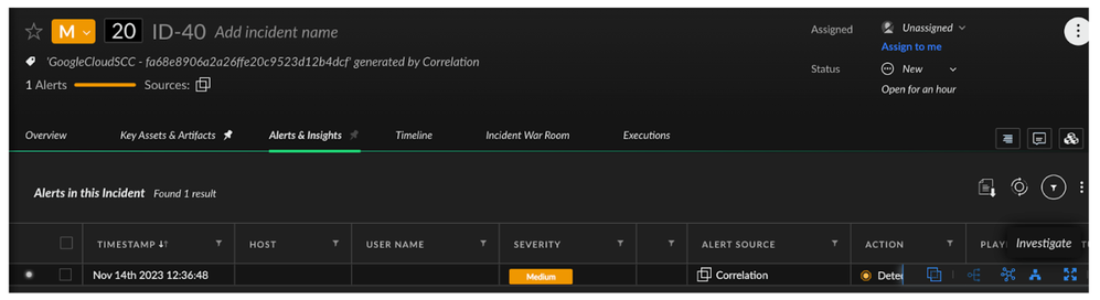 2. When there is any new findings from SCC, you can see a generated incident: