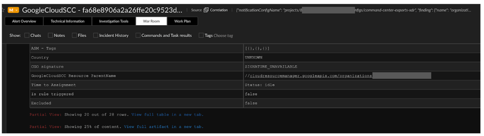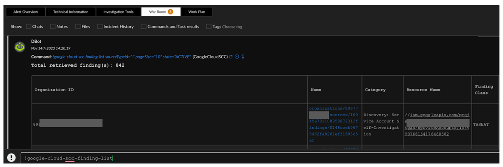 Or, you can run a command directly in the War Room to get additional information directly from SCC through the integration: