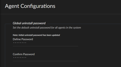 If you wish to use a different password to uninstall specific agents, you can override the default global uninstall password by setting a different password for those agents in the Agent Settings profile.