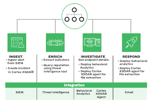 The customer solved these challenges by deploying Cortex™ XSOAR alongside the existing SIEM, threat intelligence, email, and behavioral analysis solutions. Now, the security teams can take advantage of: