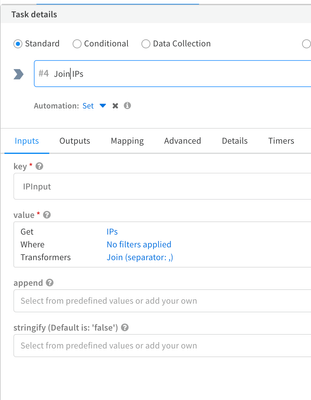 We are working on a WebEx playbook where IPs need to be added to proxy profiles. However, we are encountering an issue where, if a user mentions multiple IPs, the playbook task fails to add those IPs. Could you please suggest changes that need to be made in that task, as well as its input transformers and filters? We need to figure out how to split multiple IP inputs into single inputs. Please find the attachment for snapshots of the playbook errors.