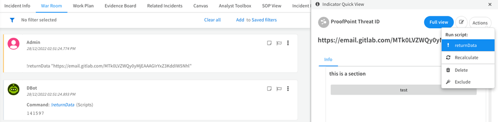 However, the script isn't aware of the incident on which it has run so the id of the incident must be given manually. demisto.investigation() gave me the output below
