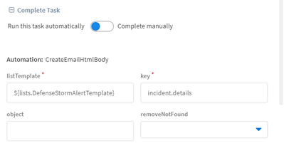 I see the problem. The list template should be the name of the list only and not part of the ${} notation. for ex. !CreateEmailHTMLBody listTemplate=DefenseStormAlertTemplate ...