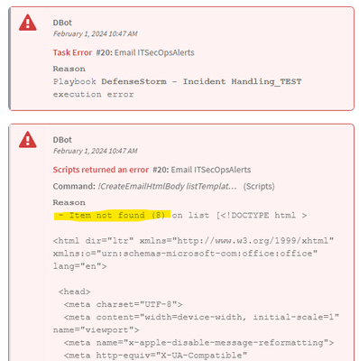 I am attempting to create an email from an HTML template but am receiving an error stating "Item not found (8) on list..." followed my the HTML contents of my saved list. I am sure it is looking for the key attribute that is required for the script, however I am not sure what it is asking for.