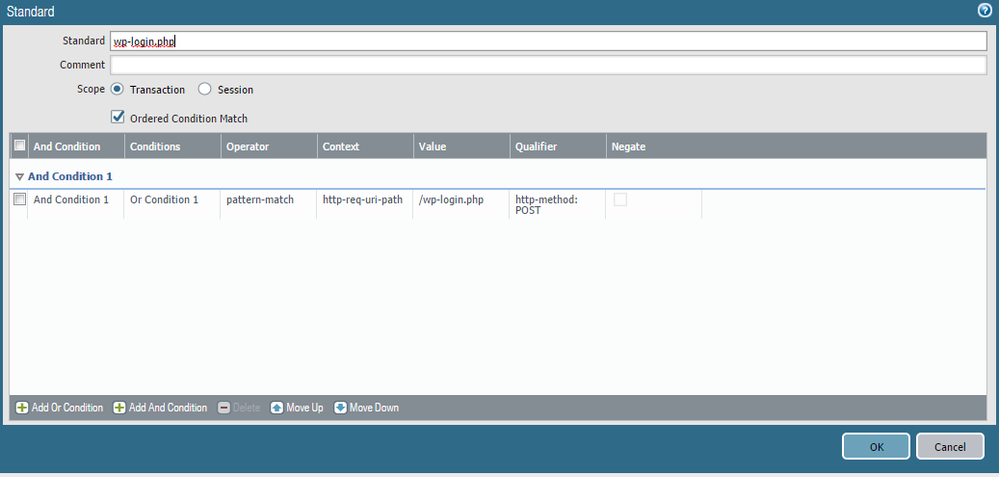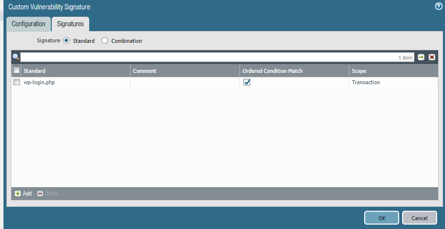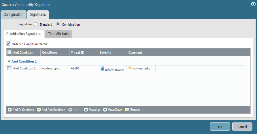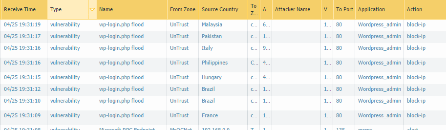 Today we built a custom vulnerability signature to block excessive request from one IP to wp-login.php.