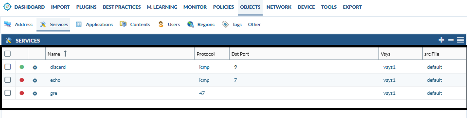 Hi @Ifixtheinternet Those are default service protocol from your cisco asa config, if it's red dot , means it's not being used in any group object or policies.