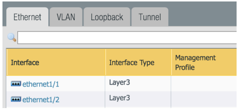 Our next step will be to configure our ethernet interfaces and assign them to our new Security Zones. We will click on Interfaces on the left which is above Zones. The page should look like this.