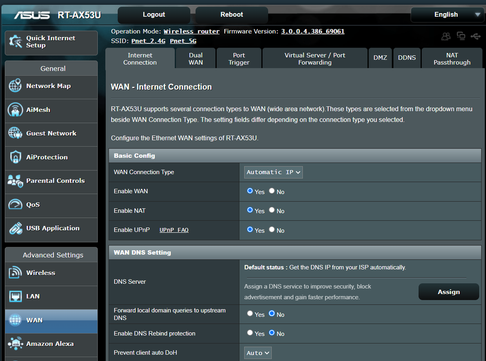 Asus RT-AX53U AX1800 LAN -> DHCP