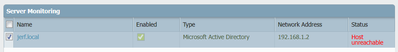 AD is pingable from management as well trust interface but in the Server monitoring TAB the status is showing