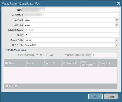 You have to set an interface . I typically use the untrust interface and next hop to none.