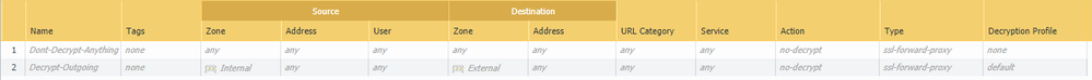 After watching all tutorials and reading all PAN's walkthroughts, I still fail to disable the SSL Inspection (decryption) on all of the outgoing (or any..) traffic.