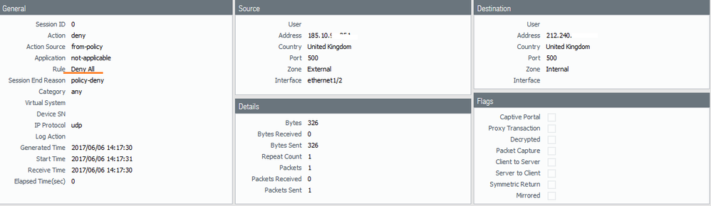 Also for some reason the destination seems to be Internal where as the interafce is the public one.