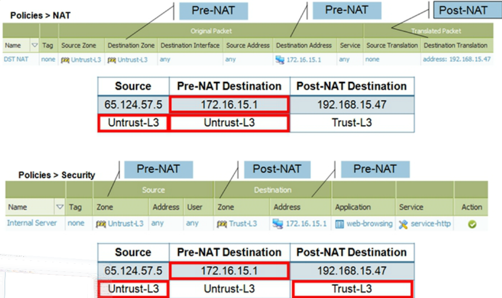 This is being denied by my Deny All rule , I assume becasue the FW is only seeing the NAted destination (internal) becasue NAT is done before the FW Rules are hit ?
