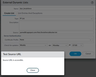 After adding edl to palo alto it sais that source is avaible but it only lists 0.0.0.0/32. Ive tried import now or request edl refresh in CLI, still nothing.