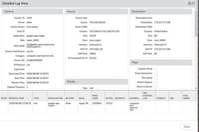 Traffic is allowed, rule allows all aplications from mgmt of firewall to internet