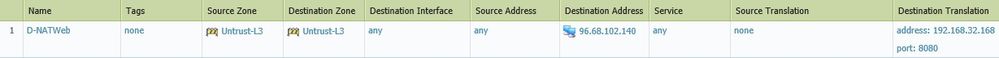 I have a basic IIS web server listening on port 80. My security and NAT rule works fine for that.