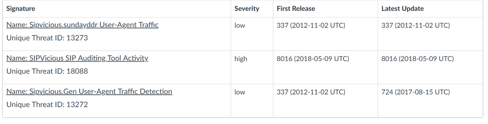 So "SIPVicious" is on the Anti-Spyware profile, I have a exclusion for the "Audit-Tool" as that's the only one we see.