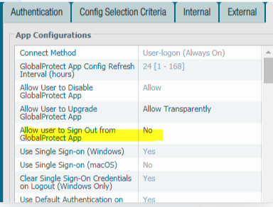 We do pre-logon (with always-on) in my environment. We have the option set to yes for users to logout, but users don't have the sign-out button. I'd suggest opening a ticket with TAC, but I would think that if you have the option to sign-out turned off it shouldn't be an option.