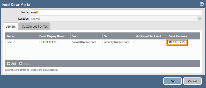 I have configured email profile to send system logs of firewall. I have configured the smtp server and my SMTP server is listening in port 587 but the firewall is sending traffic to the destination SMTP server using port 25.