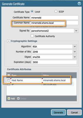 I have tried using both, the root cert(PA) and the cert generated using root(MINEMELD). Result is always blank