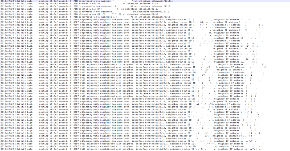 Having an issue with OSPF neighborship constantly going up and down after reboot. Please see below: