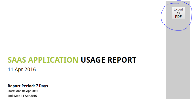 How can we share the new SaaS Report introduced in PAN OS 7.1 on a PA-500? There is no option to export to a PDF.
