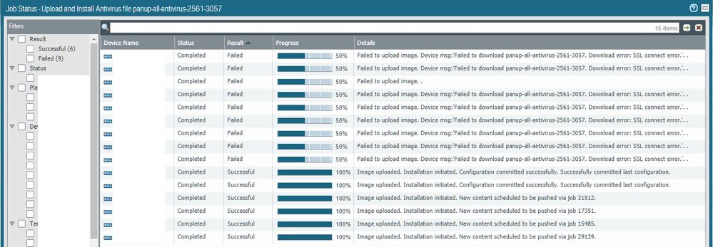 After upgrading some of our firewall and Panorama to PAN OS 8.x, we cannot push out dynamic updates from Panorama anymore. We are still able to push out dynamic updates to firewalls running anything below PAN OS 8.x, but nothing within the PAN OS 8.x range.