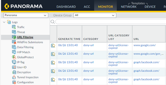 Can't I check blocked URL sites in the traffic log if I don't have a URL license?
