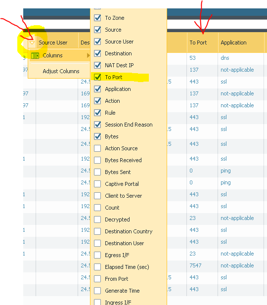 no I mean services, I have it set to show my port in my traffic monitor already, but I want to be sure what palo alto is defining as services since they give the option to add it in their rules I was surprised there was no option to filter by services