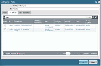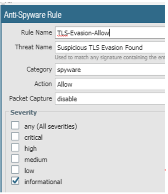 I have enabled antispyware allow profile for HTTP & TLS evasion, but still we are getting alert log, any reason. How to fix this.