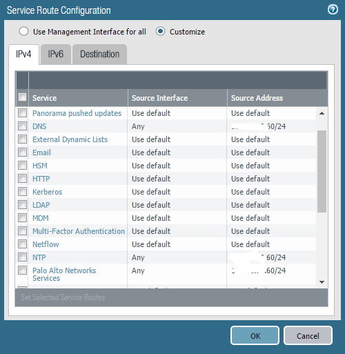 I have a problem on a PA500. When it attempts to send traffic to one particular subnet via the management interface, the packets are sent to the wrong place. Instead of going to the default gateway, they go to an ASA. All other subnets route correctly.