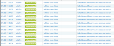 Your NGFW is still trying to connect to WildFire every minute like the update-schedule is still there. Maybe the config is in the CLI, but not the GUI. Could you run the commands > "set cli config-output-format set", > "configure", and # "show deviceconfig system update-schedule"? If the wildfire is still there, I would delete the whole section with "delete deviceconfig system update-schedule" and then add the pieces that you want back. You can copy and paste the CLI for the other sections to quickly add them back. You can also "commit" on the CLI.