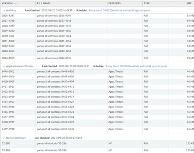 set deviceconfig system update-schedule anti-virus recurring sync-to-peer yes