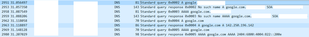 1. Not all queries are requested, but only a few packets request duplicate DNS queries using Origin NICs and VPN NICs.