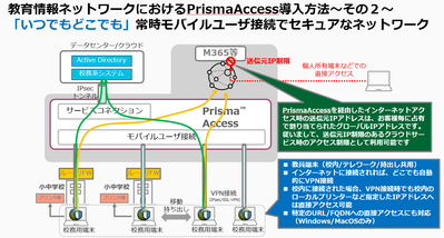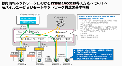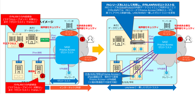 パロアルトネットワークス社では「ゼロトラスト」化をクラウドベースで行うソリューションとしてSASE/PrismaAccessを提供しています。PrismaAccessの基本的な利用/接続形態は大きくは以下の2通りです。 ■データセンターや拠点のIPsec接続(固定接続) 国際標準規格に基づいたIPsecトンネルにてセキュアに拠点とPrismaAccessを接続します。 もしくはZTNAコネクターにて特定のアプリケーションサーバーとの接続する接続の利用が可能です。 ■端末からのVPN接続(モバイルユーザ接続) 端末にGlobalProtectのアプリケーションをインストールし、IPsecもしくはSSL-VPNにてPrismaAccessと接続します。 もしくは明示的プロキシ(...