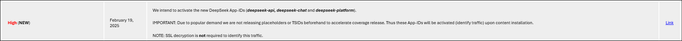Thank you for your response. However, today is already February 24 (UTC+8), and I still have not seen the app ID related to Deepseek available for use during work hours.