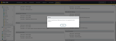 Failed to install licenses. Web proxy license is not supported for this platform.