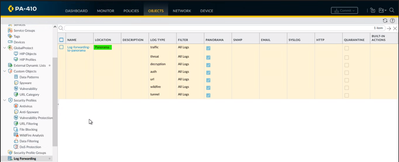 In all the locations, the common log-forwarding profile is showing, except in QJP-PA-FW