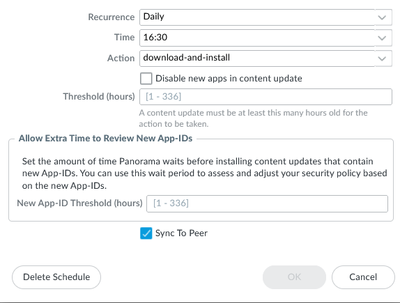Secondly, under Panorama Dynamic updates>apps and threats > i see hyperlinks for Review Policies and APPS thats it, which doesnt show me option to Enable the Disable new apps in content updates.