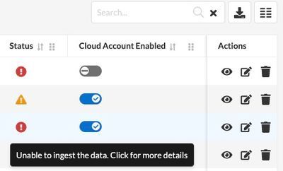 If you go to the "Cloud Accounts" page, you will see the following if you hover your cursor over the status field for the account in question: