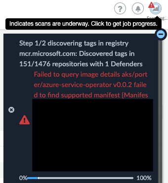 Those messages that you see in the scan results are specifically for that image. If you want to know which registry/repository has failed, you need to look in the scanning drop-down on the top right corner of the screen.