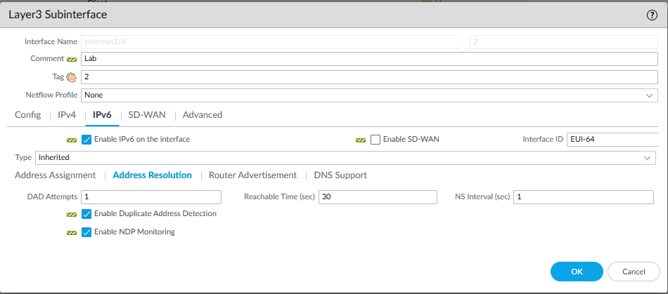 Validation Error: devices -> localhost.localdomain -> template-stack -> Lab_Stack -> config -> devices -> localhost.localdomain -> network -> interface -> ethernet -> ethernet1/4 -> layer3 -> units -> ethernet1/4.2 -> ipv6 -> inherited constraints failed : Inherited Interface, cannot have Static IPv6 Neighbor Discovery settings devices -> localhost.localdomain -> template-stack -> Lab_Stack -> config -> devices -> localhost.localdomain -> network -> interface -> ethernet -> ethernet1/4 -> layer3 -> units -> ethernet1/4.2 -> ipv6 -> inherited is invalid
